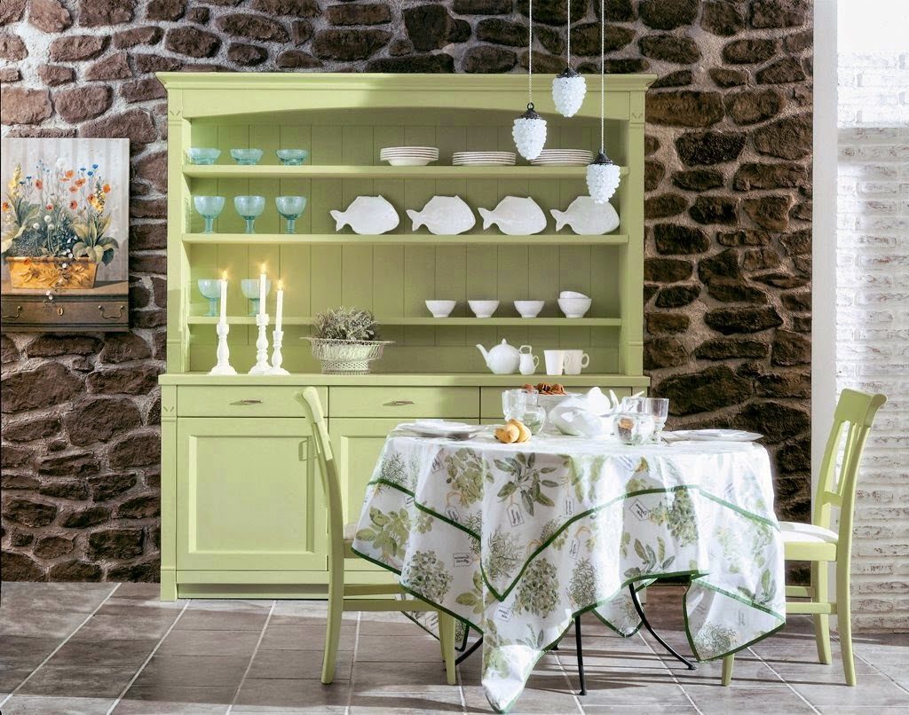 Идеально смотрится фисташковый на кухнях в стиле прованс. Ему характерны именно естественные, природные тона, поэтому в качестве основы он будет очень уместен.