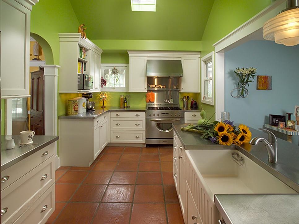 Стены . Красить стены кухни в фисташковый цвет рекомендуется, если ваш кухонной гарнитур выполнен в бежевом, кофейном или темно-коричневом цветах.