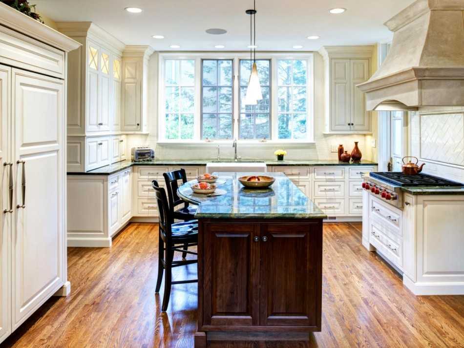 При этом следует также добиться комфортных условий для приготовления блюд. Столь разнородные функции полагается согласовать, сформировав целостную территорию. Если кухня достаточно велика, там куда проще обособить участок для размещения гостей.