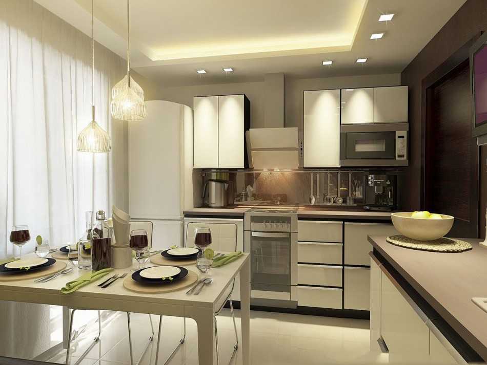 Освещение в кухне, соединенной с гостиной Источник dizainvfoto.ru