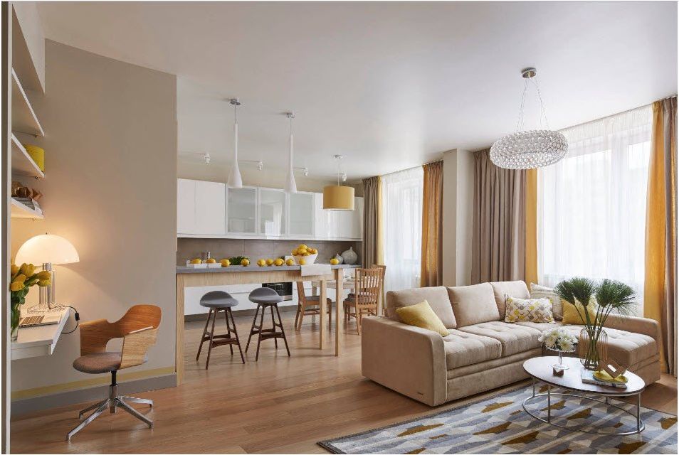 Дизайн интерьера кухни-гостиной площадью 20 кв.