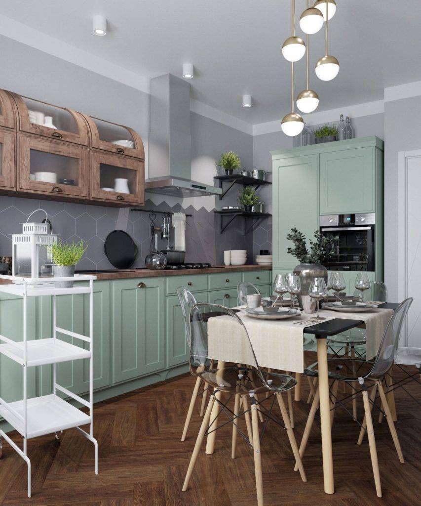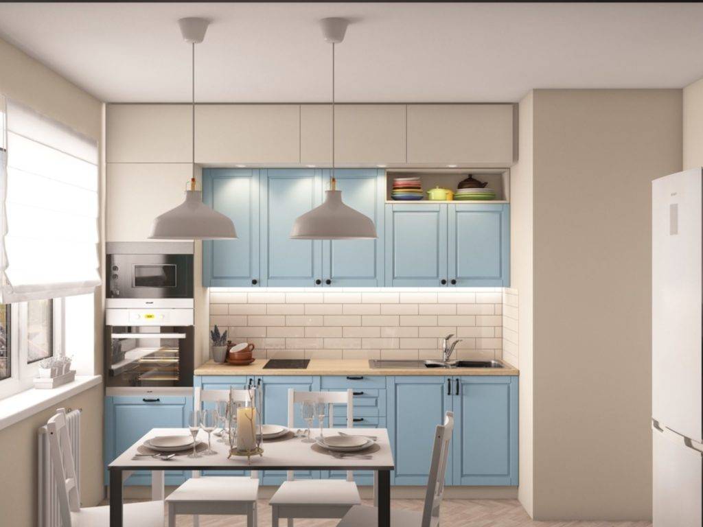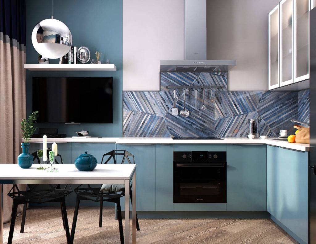 Отделка кухни в Скандинавском стиле в зелёном и голубом