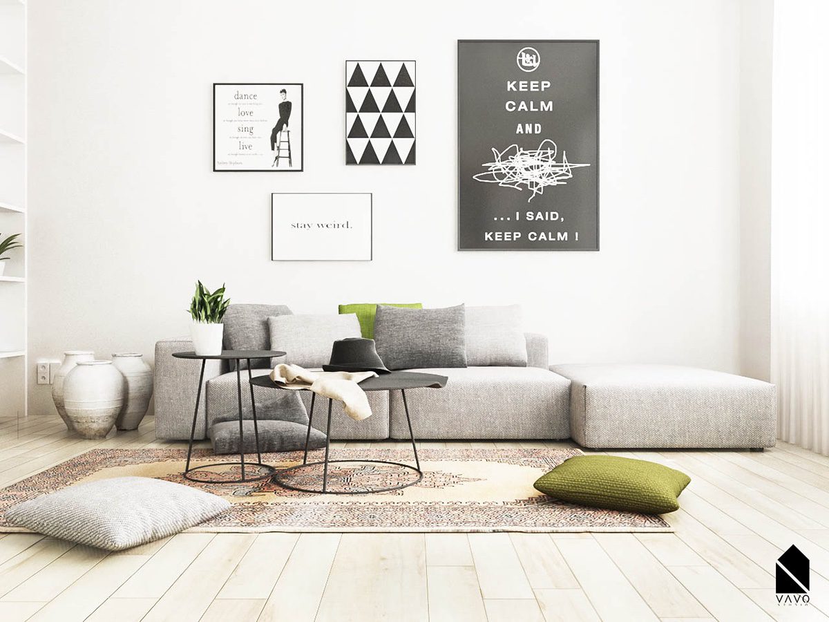 Обустроив гостиную в минималистском стиле, сначала вы начнете планировать цвета, которые в ней будут преобладать. Белый, черный, серый вписываются в минималистские интерьеры, но не только. Вы также можете выбрать из таких пастельных цветов, как розовый, цвет морской волны, коричневый или бежевый. Если внешний вид гостиной покажется вам слишком однообразным, вы можете предпочесть двухцветные стены с полосами или чрезвычайно модную черно-белую шахматную доску