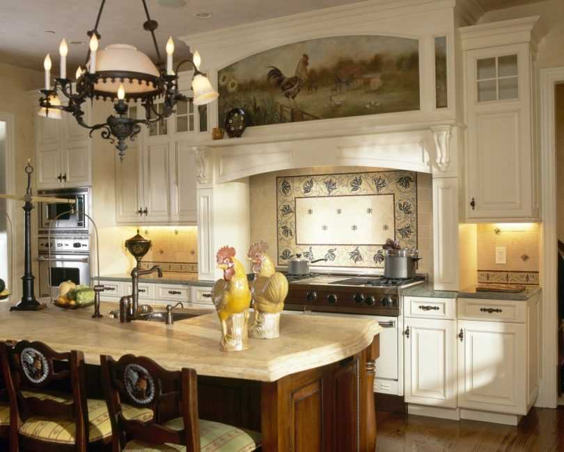 В этом стиле можно смело выставить напоказ красивые, полезные или просто милые сердцу мелочи. Прихватки, баночки для специй, статуэтки, изящные вазы – все это только добавит уюта и создаст подходящую атмосферу.