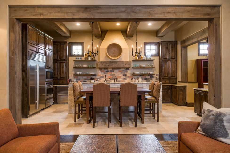 Каждая зона выдвигает свои требования к освещению – на кухне оно должно быть усиленным и направленным на рабочие поверхности. Подвесные и поворотные светильники в стиле прошлых эпох прекрасно справятся с этим заданием. Для островной планировки подойдет подвесная панель со встроенными точечными лампами.