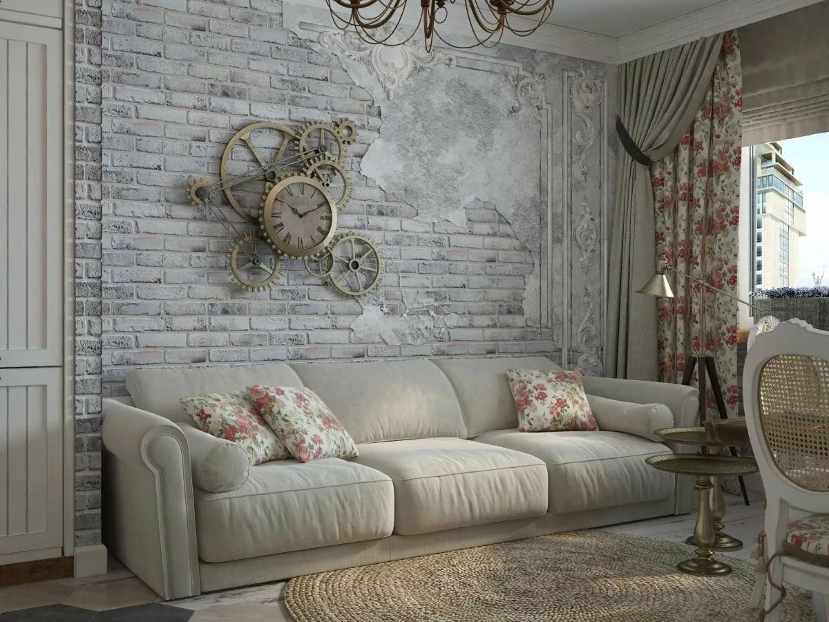 Шторы с нежными цветами хорошо подойдут для гостиной в стиле прованс. Интересным решением также будет картина или настенные часы, относящиеся к климату южной Франции. Провансальский стиль в гостиной — выбор, который стоит рассмотреть.