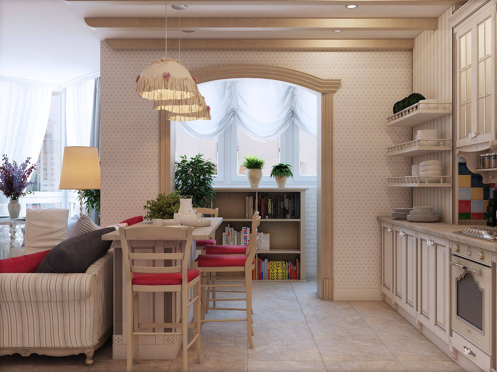 Если есть возможность согласовать перепланировку по присоединению лоджии к площади маленькой кухни, то стоит ей воспользоваться. Так удастся выделить место для обеденной зоны, барной стойки или небольшой зоны отдыха.