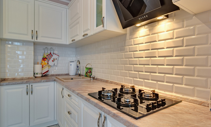Ценителям эргономичных интерьеров должно понравиться, что планировка кухни в стиле прованс не ограничена строгими правилами и предполагает такую же расстановку модулей, как и в любом современном направлении.