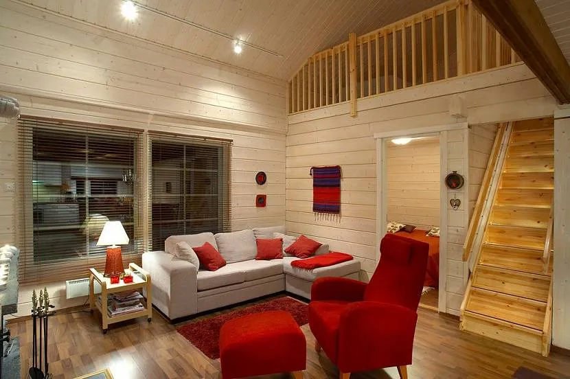 Маленькая уютная гостиная в деревянном доме