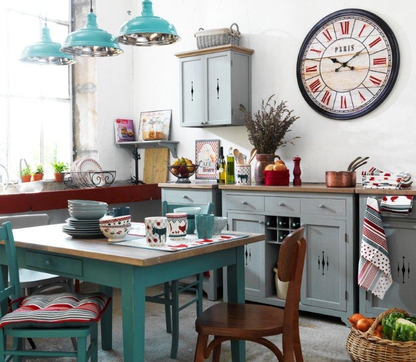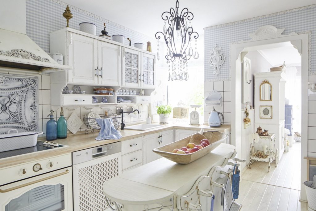 - прованс – появился во Франции, отличается обилием текстильных элементов (чехлы, скатерти, шторы, дорожки и т. д.), светлой палитрой оттенков и обилием декора в виде ковки, росписи, декупажа;