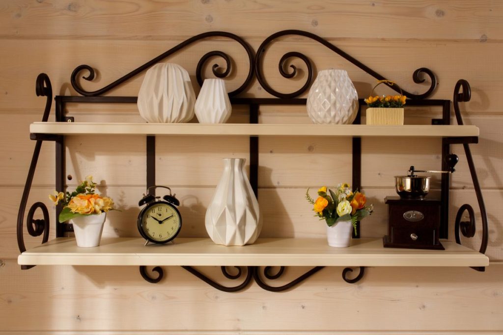 Полка из массива на кованой консоли