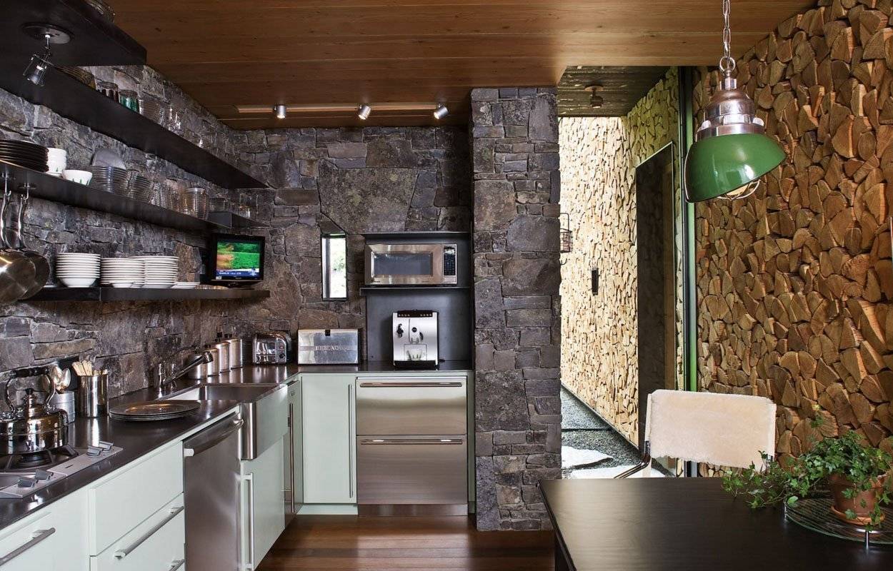 Выбор камня в роли отделки стен кухни – смелое, оригинальное решение. Необычная фактура, теплые тона, сочетание с другими материалами и бесконечное количество вариантов дизайна позволят создать уютную атмосферу, способствующую приему еды и неторопливой беседе.