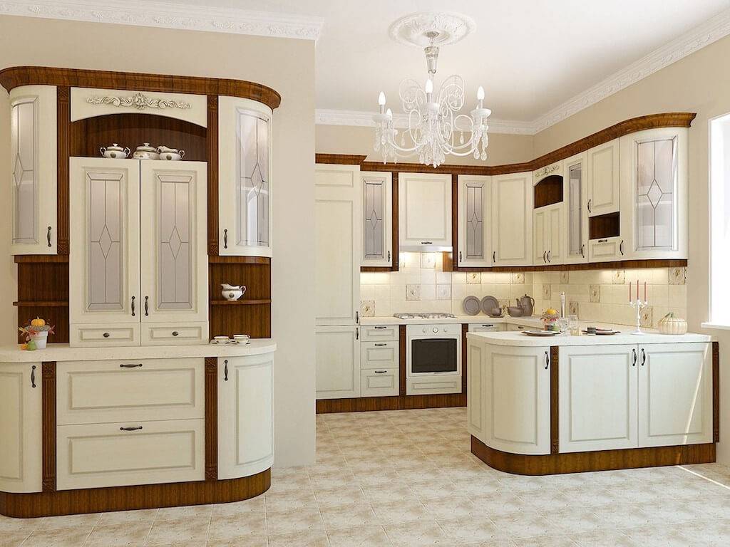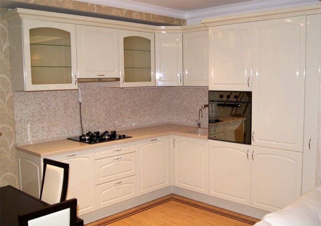 Что по поводу формы гарнитура, она бывает разнообразной — прямой, радиусной, г- или п-образной. МДФ принимает разные формы, благодаря этому здесь нужно ориентироваться на собственные предпочтение. Впрочем имейте в виду, что прямой гарнитур — очень бюджетный вариант, в то время как стоимость радиусного гарнитура из древесноволокнистой панели средней плотности достигает ста тысяч рублей.