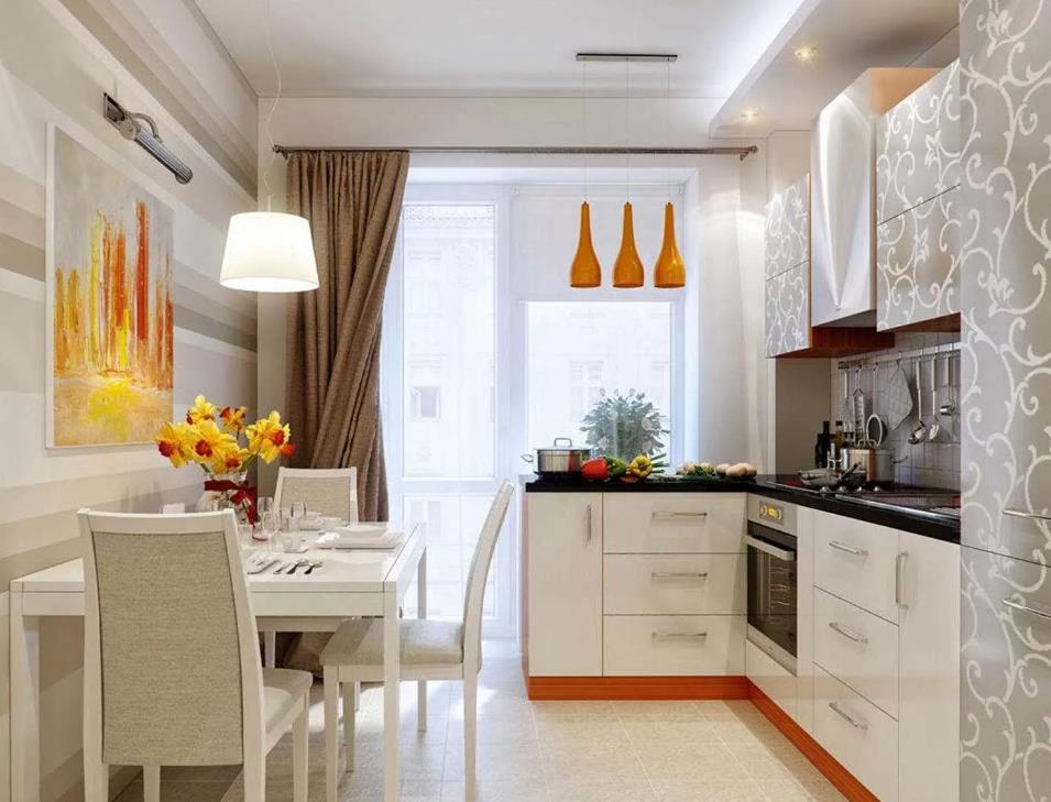 Правда, если не получится найти мебель необходимых габаритов, ее придется делать на заказ. Но зато картинка впечатляет — небольшая кухня 10 кв. м. становится гораздо больше