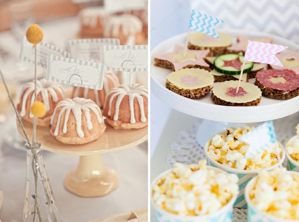 Начинать выставлять десерты рекомендовано от центра стола, постепенно передвигаясь к краю. Для этого используют подставки, этажерки, высокие емкости и коробочки из декоративной бумаги. С их помощью можно эффективно использовать свободное пространство на столешнице. Такой метод пользуется большой популярностью.