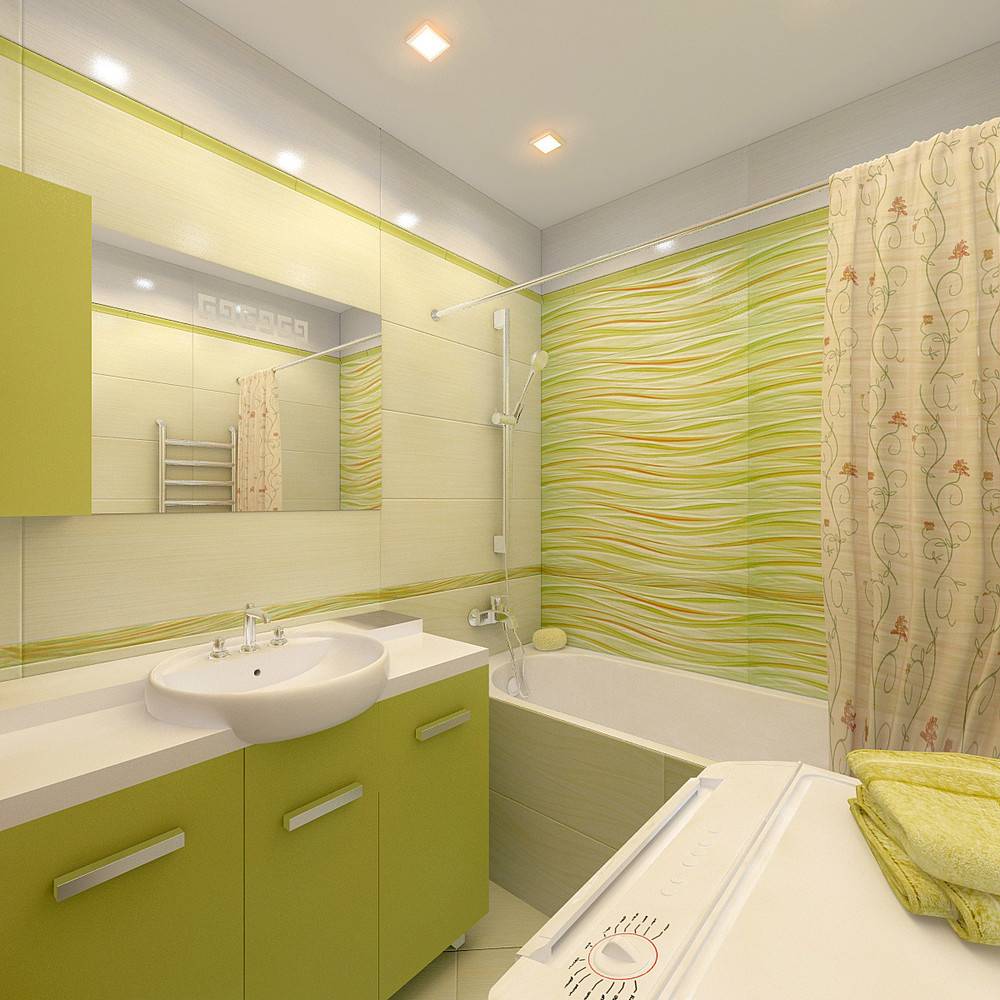 Интересный вариант, где в цвете оливы выполнена сантехника или мебельный гарнитур. Также удачно будет сочетаться мраморное покрытие.