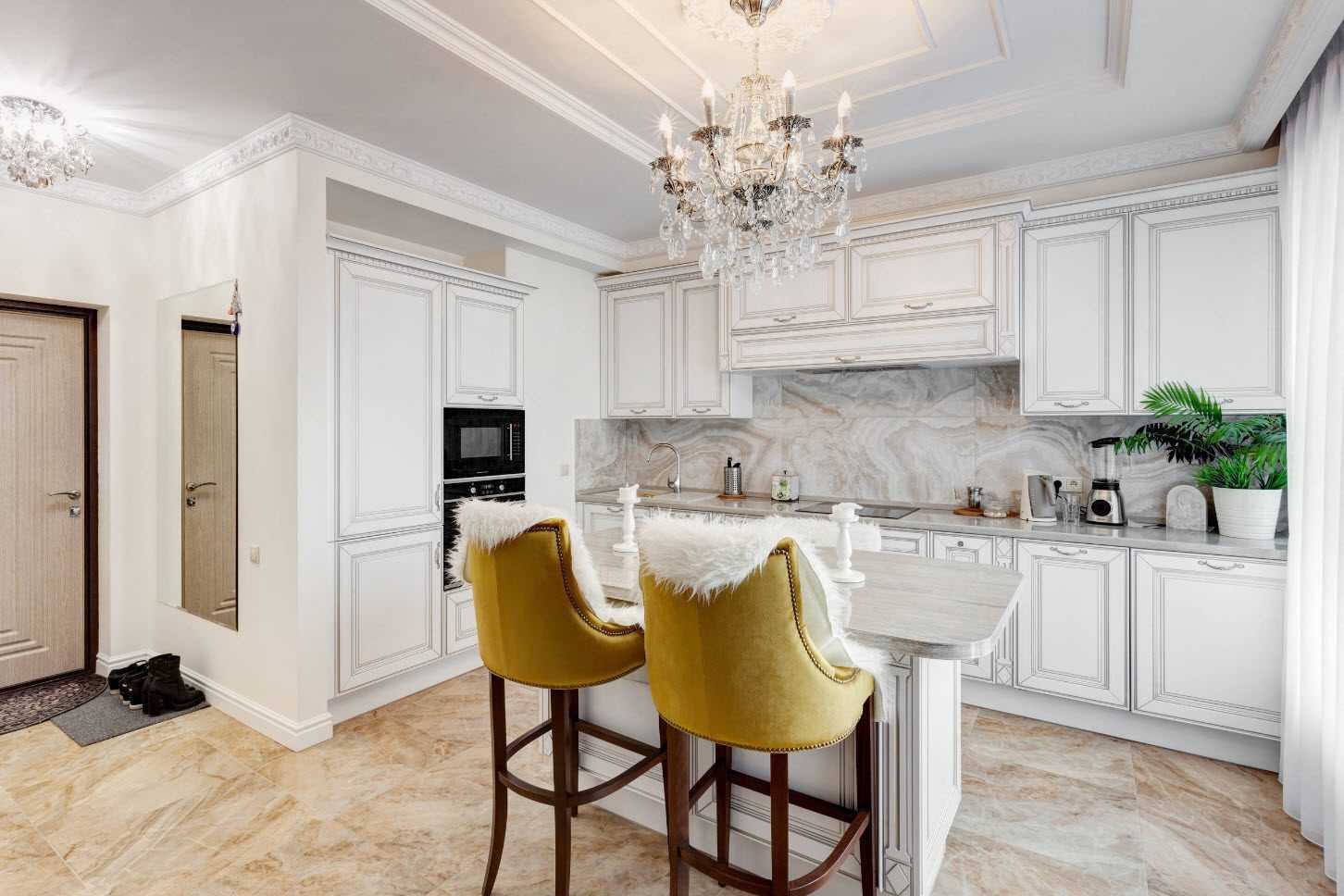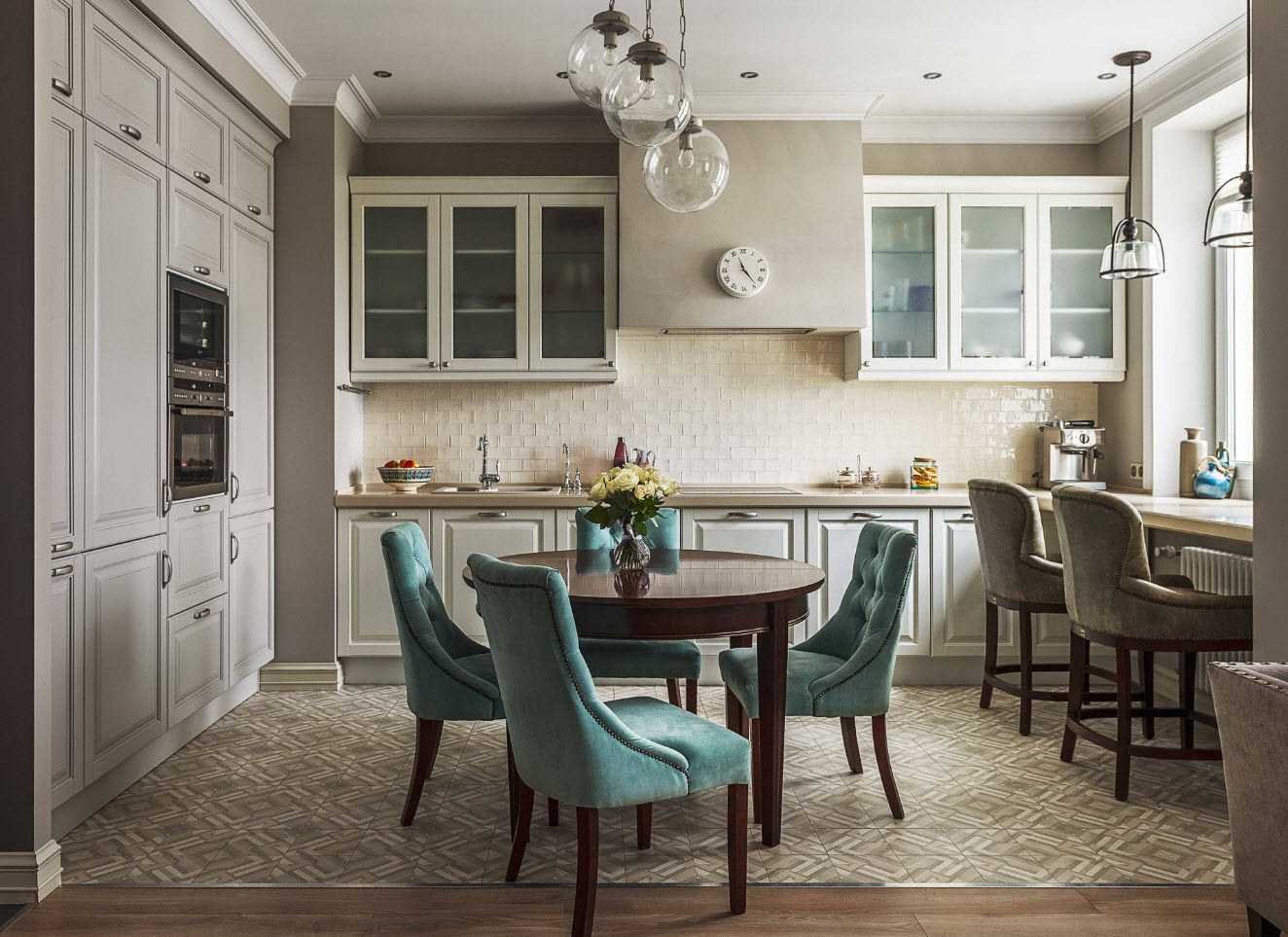 - Классика. Если вы не хотите часто менять кухонный гарнитур, то самый удобный вариант для вас – оформление в классическом стиле. Такой дизайн сочетает геометрические фигуры и прямые линии. Для него подбирают сдержанные цвета.
