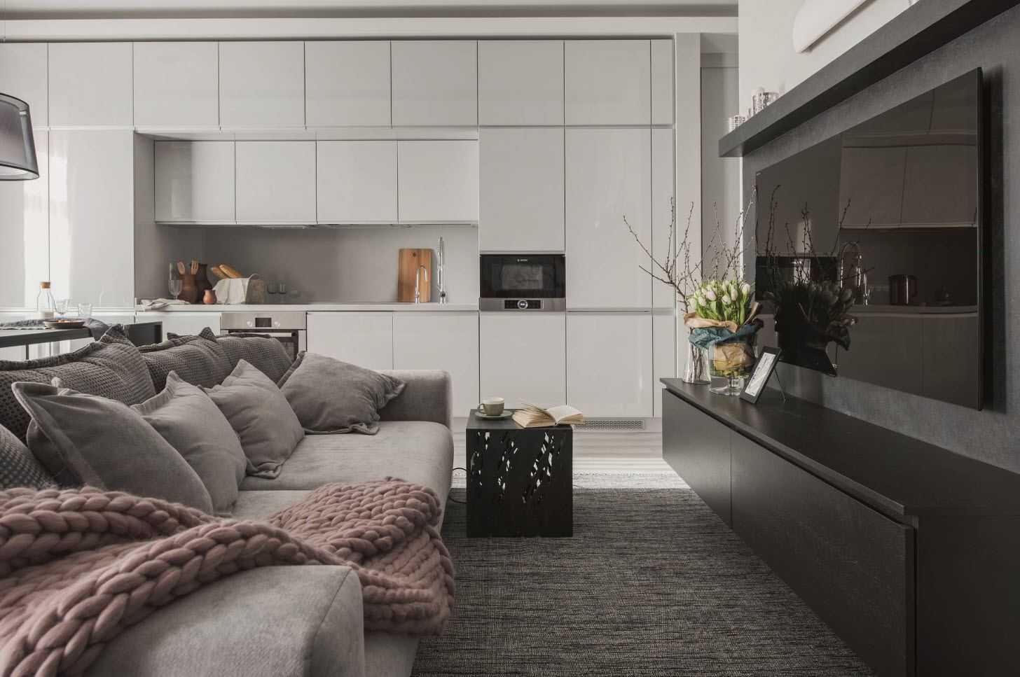 - Диван. Мягкую мебель можно использовать для разделения помещения на зоны и экономии свободного пространства. Удачным вариантом будет дизайн с угловым диваном. Желательно, чтобы в нем были ящики для хранения приборов.