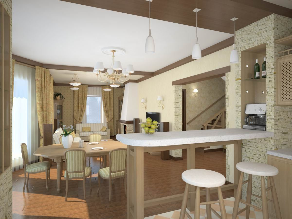 Объединить малогабаритный интерьер поможет арка, в которой будет встроена барная стойка.