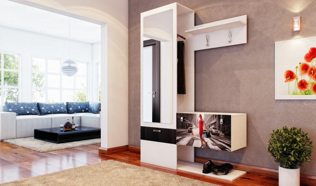 Примеры разнообразных вариантов зонирования прихожей и гостиной вы можете посмотреть в нашей фотогалерее.