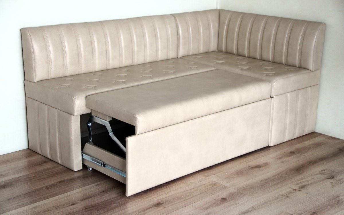 Наименее подходящими для кухни являются выкатные диваны, которые не имеют дополнительных мест для хранения и представляющие собой довольно громоздкую конструкцию.