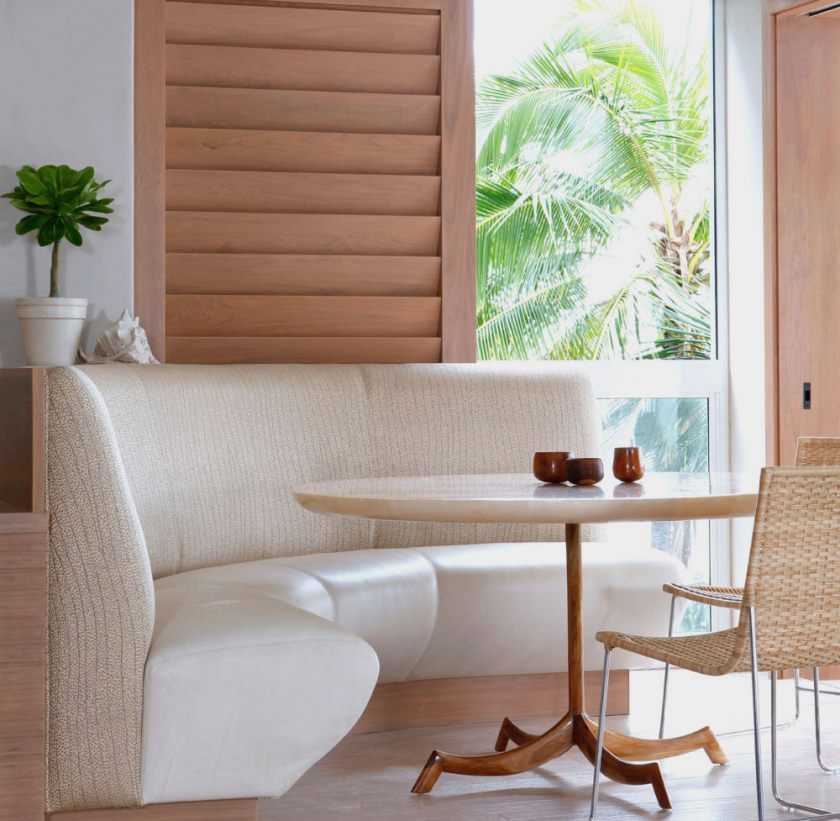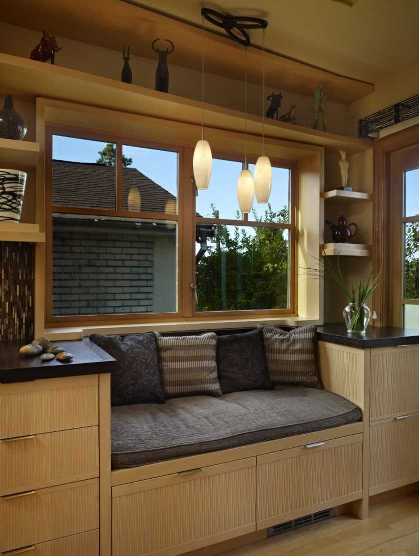 Дизайн кухни с диваном со встроенным местом для хранения