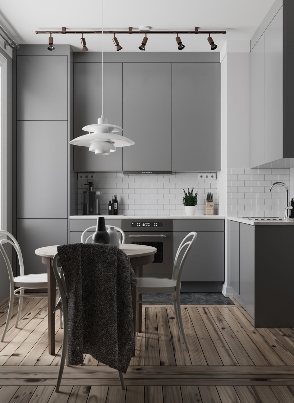 Светло-серая кухня считается совершенно беспроигрышным вариантом, так как отлично вписывается и в большие, и в маленькие помещения.