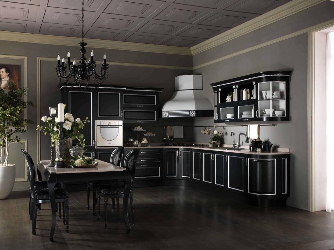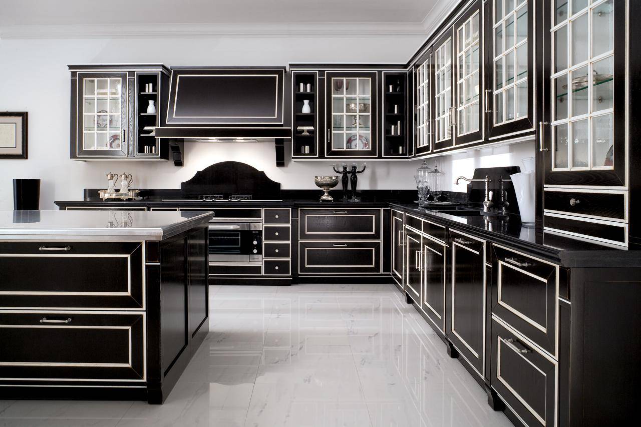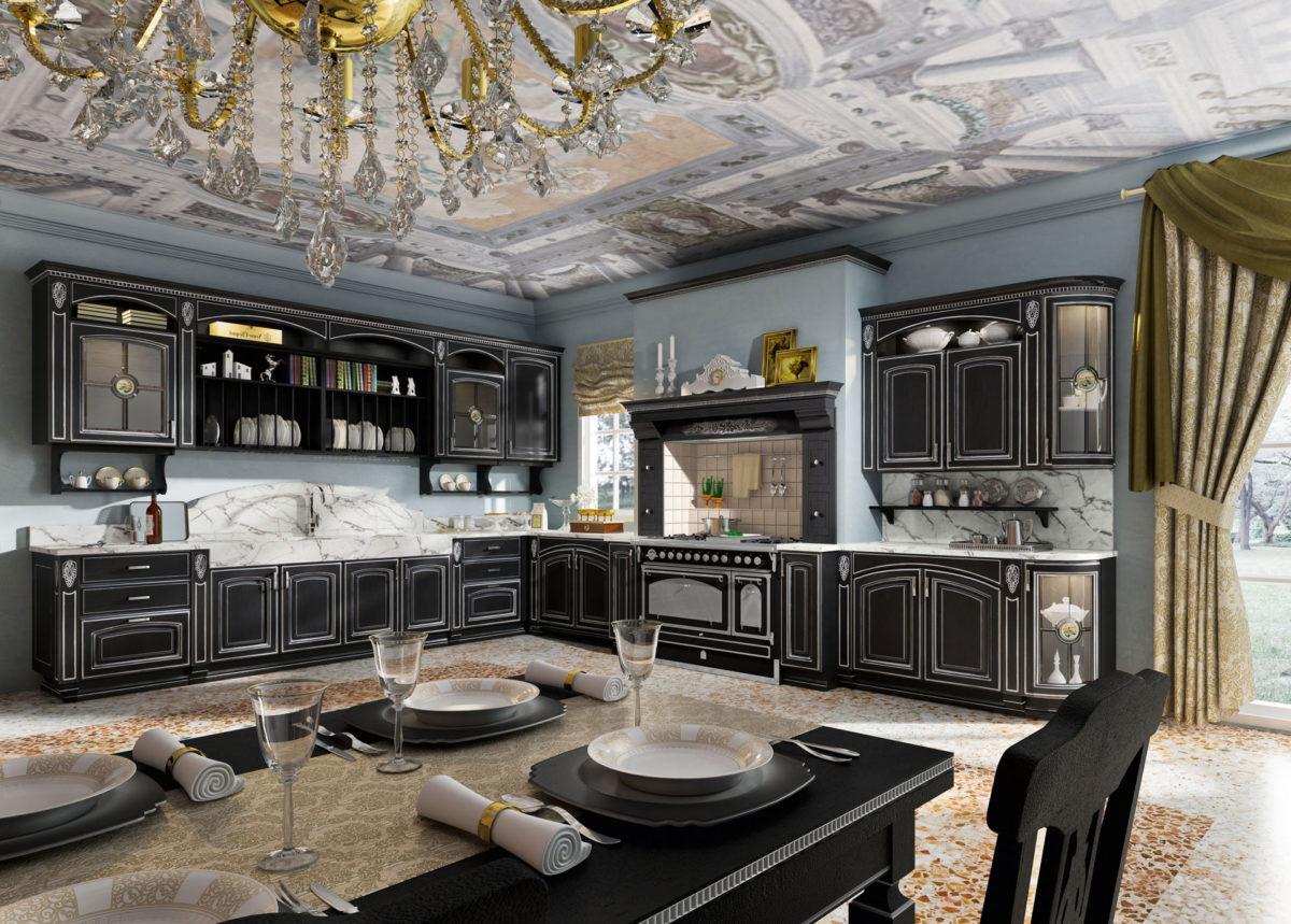 Чёрная кухня в классическим стиле — это феерия роскоши, элегантности и благородства. Тёмные тона в сочетании с классикой раскрываются по-новому. Это смотрится не мрачно, а возвышенно и утончённо.