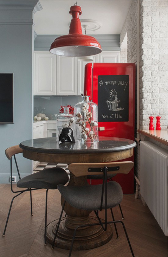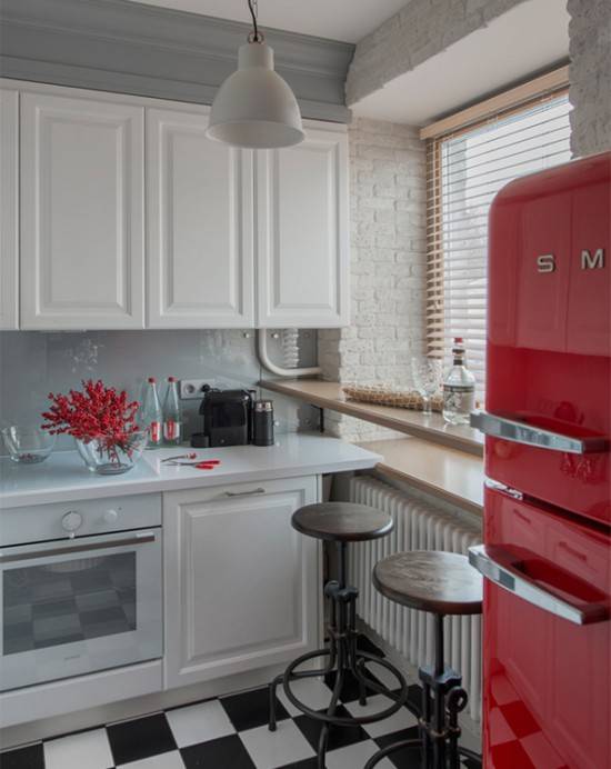 Современные дизайнеры тщательно продумывают расположение окна и размещение мебели в кухне относительно этого окна. В старых советских квартирах, к сожалению, окно на кухне в большинстве случаев установлено не очень удачно, не стыкуясь и не интегрируясь ни с чем. Попробуйте разместить тут рабочую поверхность или мойку. Несомненно, вы не пожалеете об этом, особенно если вид из вашего окна красивый.