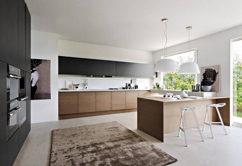 В контемпорари отлично вписываются современные системы хранения, система push-to-open, а также другие лаконичные и технологичные решения. Основные цвета – простые: черный, белый, серый, бежевый, коричневый. А вот для акцентов подойдут любые яркие или глубокие комплексные оттенки, поэтому такая кухня в любом случае смотрится стильно и актуально.