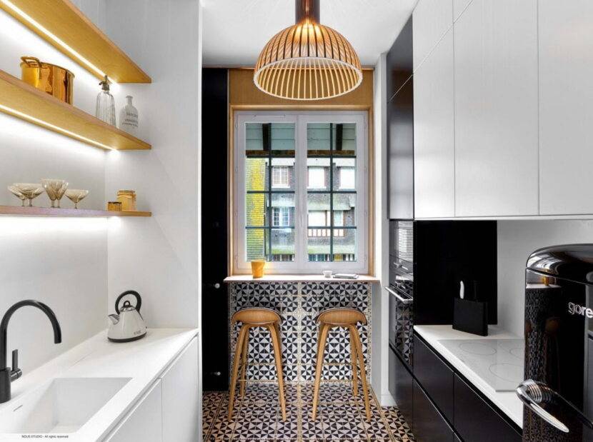 Дизайн кухни с окнами на одной стене