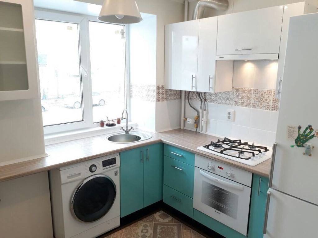 - высокий подоконник позволяет разместить стиральную или посудомоечную машину;