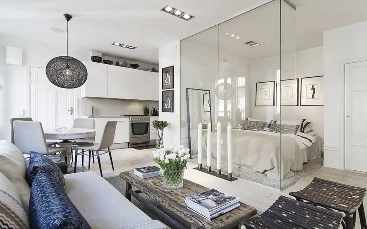 Такая планировка выглядит просторно, свободно, удваивает количество дневного света. Ее можно оформить в любом стиле. Все будет выглядеть уютно, комфортно. Но совмещенные комнаты не всегда удобны во время готовки. Все запахи и шумы будут в гостиной.