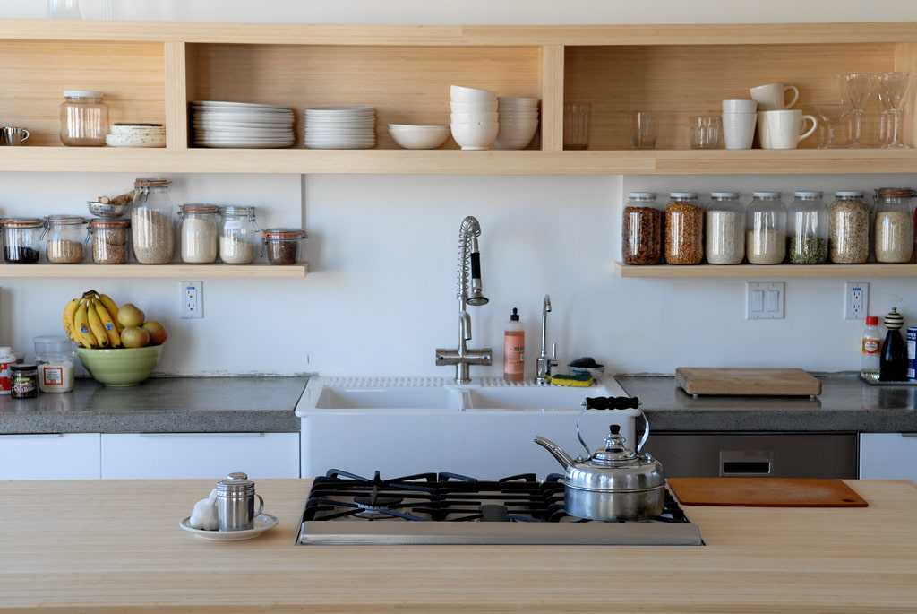 Совместите открытые полки с закрытыми шкафами для потрясающего эффекта (Дизайн: Abode Architects)