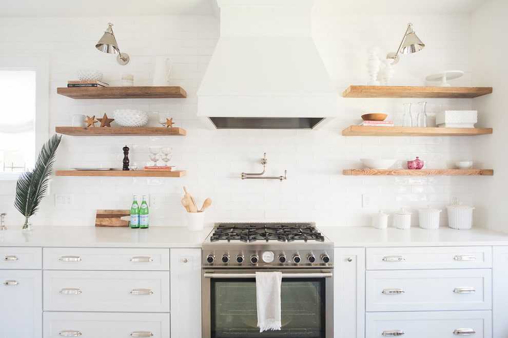 5. Для многих стилей интерьерного дизайна навесные открытые полки для кухни являются элементом обязательным.