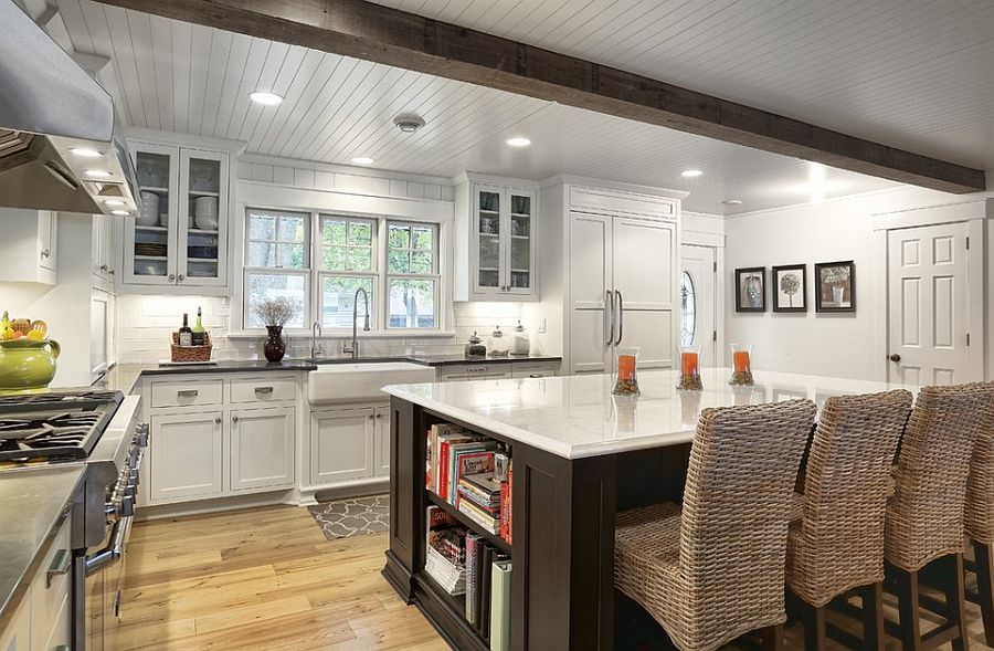 Кухонный островок с книжными полками, достойный аплодисментов (Дизайн: Mata Design Studio)