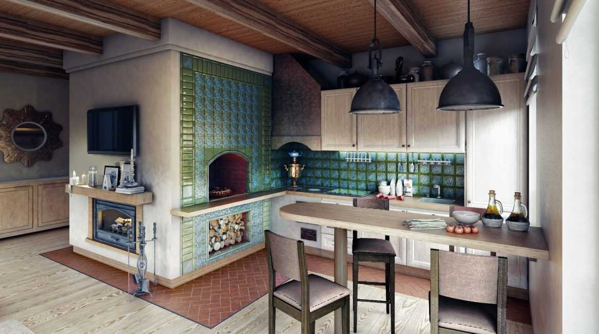 Дизайн небольшой кухни с печью