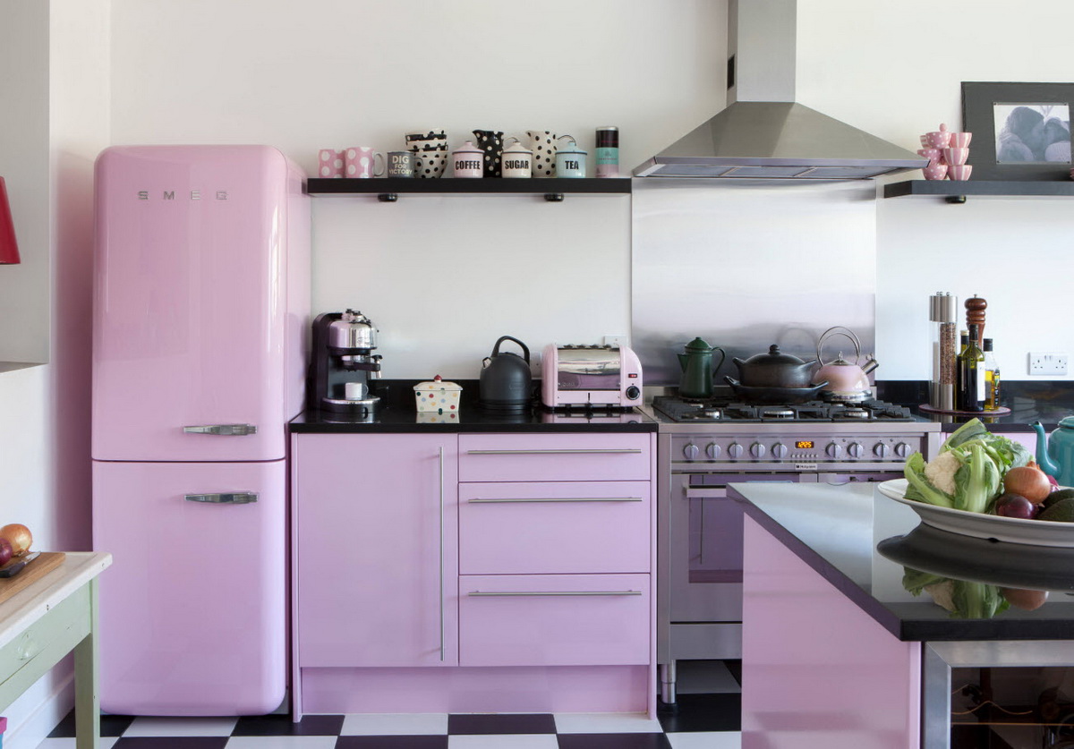 Если невозможно установить гарнитур данного цвета, ценители могут окрасить стены кухни или использовать сиреневый декор