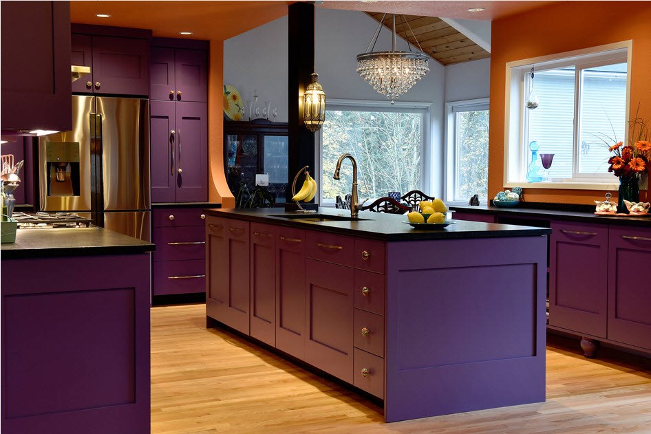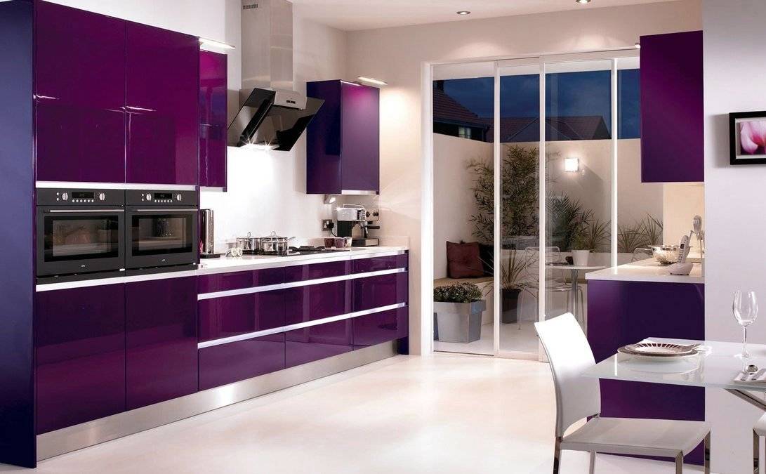 И наоборот, если стены имеют фиолетовый цвет, кухонные фасады должны быть нейтрального или контрастного цвета. Только тогда интерьер помещения будет выглядеть легко и гармонично.
