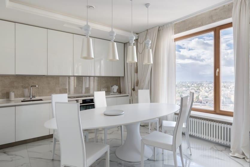 Выбор отделочных материалов для кухни 2022 в белом цвете
