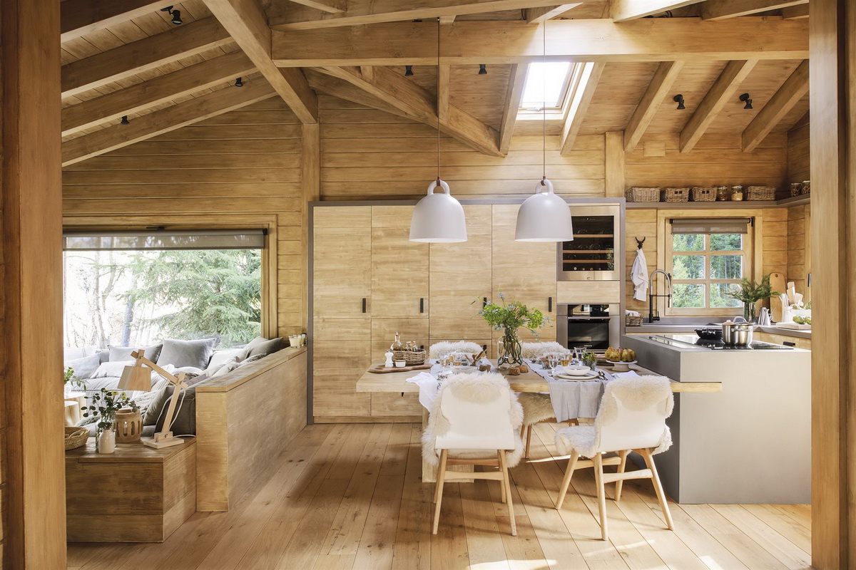 - Создание отдельных зон в открытом макете относительно просто. Но заставить их чувствовать себя уникальными и связанными-это еще одна проблема. Один из способов сбалансировать эту проблему-выбрать обеденный стол, который имеет ту же цветовую палитру и текстуру, что и полы. Результат — легкие и свободные цветовые переходы для вашего глаза.