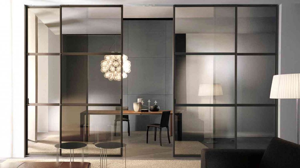 Являются самым практичным и удобным решением. Достаточно часто в интерьере встречаются перегородки из дерева или гипсокартона, которые могут отличаться самыми разнообразными формами или менее тяжеловесные конструкции из стекла, пластика и даже текстиля.