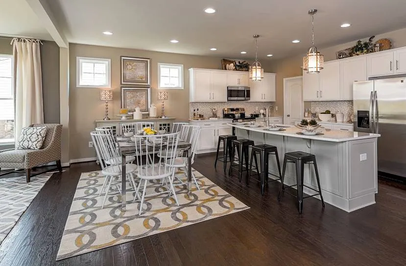 Это одна из главных особенностей планировки американских квартир, где кухню часто объединяют с гостиной и столовой.