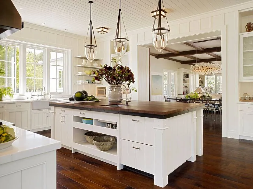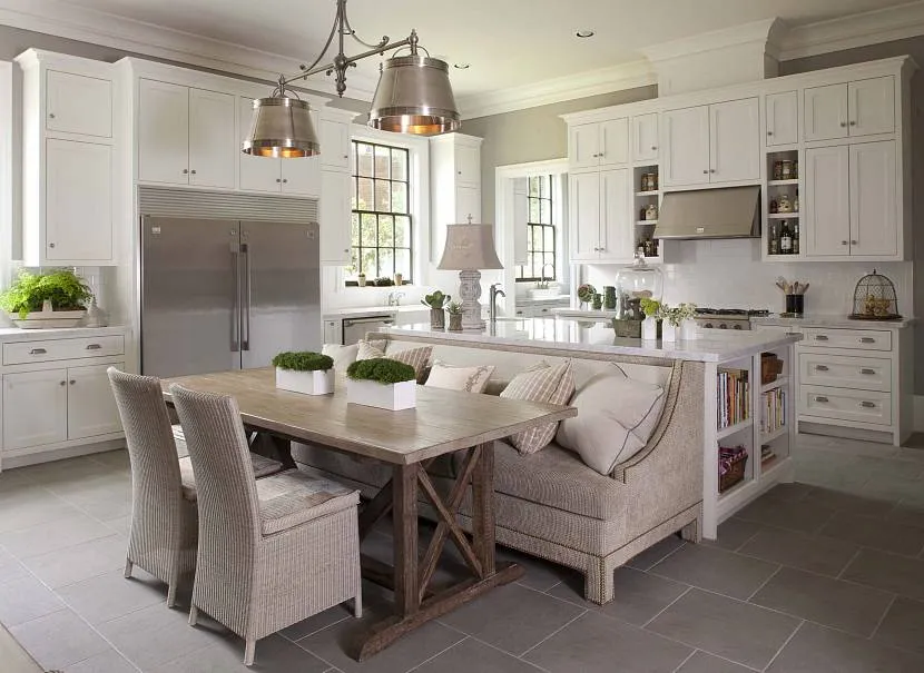 Не всегда остров оснащён рабочей зоной; иногда это просто стол, но в нем также есть место для посуды, кухонной утвари и бытовой техники. Два острова – редкость, даже для американцев, любящих размах и просторные интерьеры.
