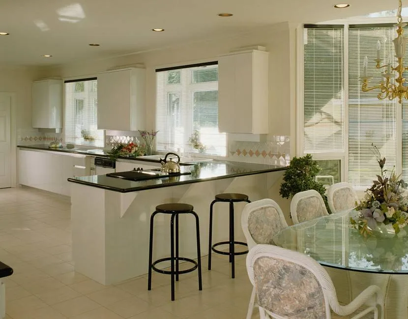 - позволяет зонировать пространство, разделив кухню на 2 зоны: рабочую и обеденную