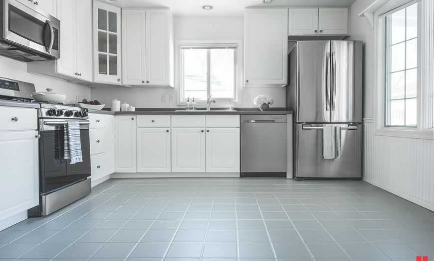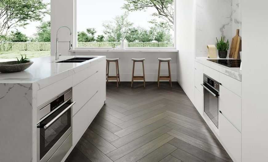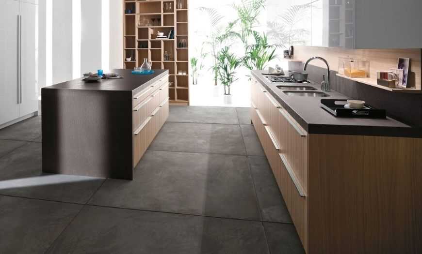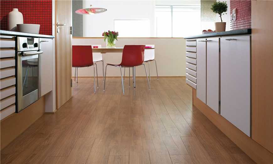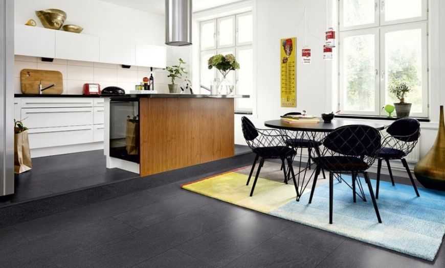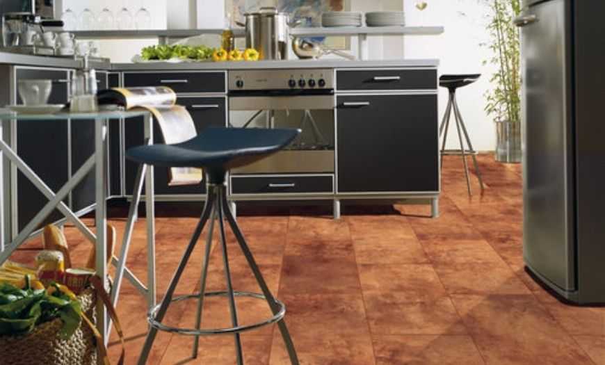 - На пол можно постелить лакированные доски, ламинат, кафель или паркет.