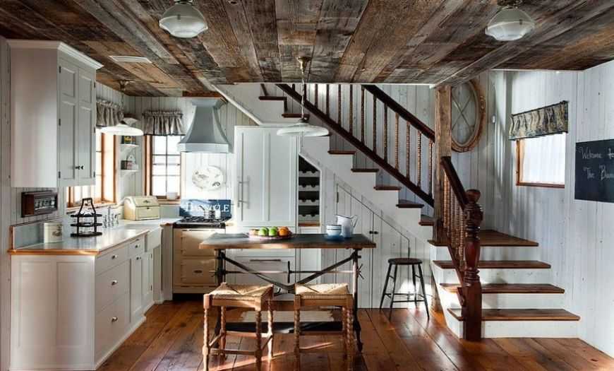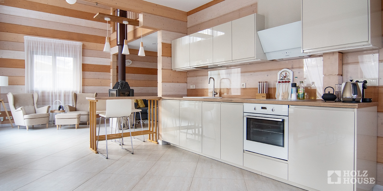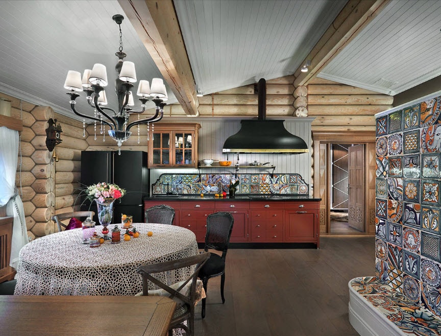 При планировании интерьера кухни в деревянном доме нужно учитывать несколько моментов: