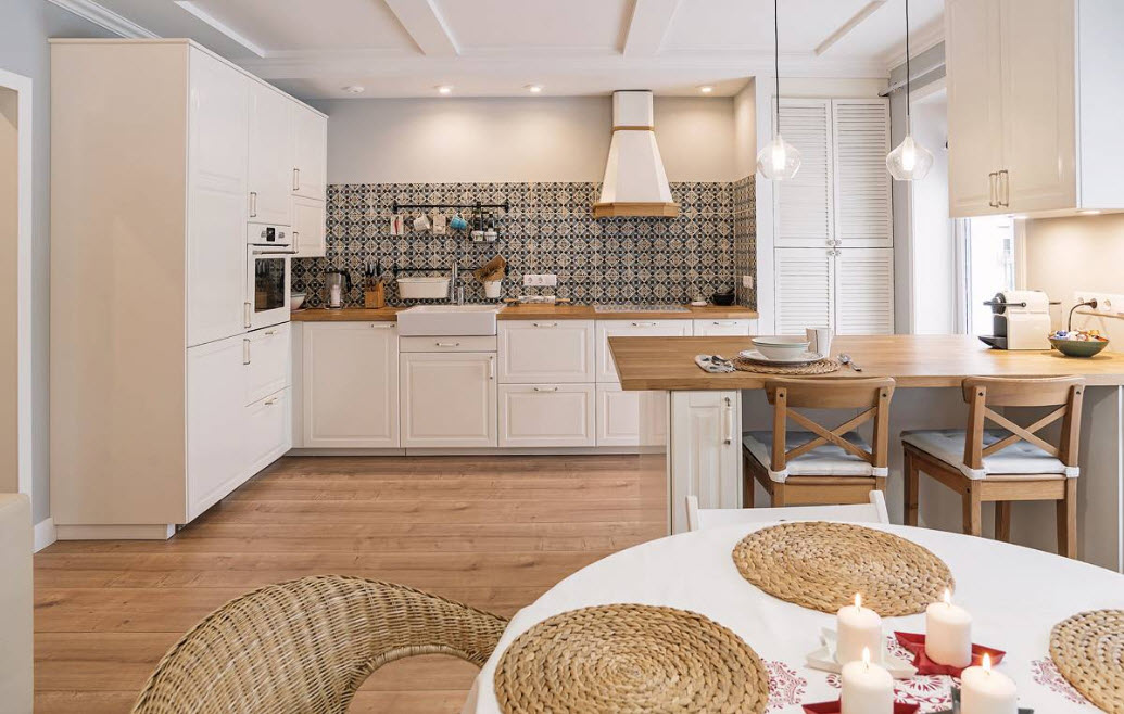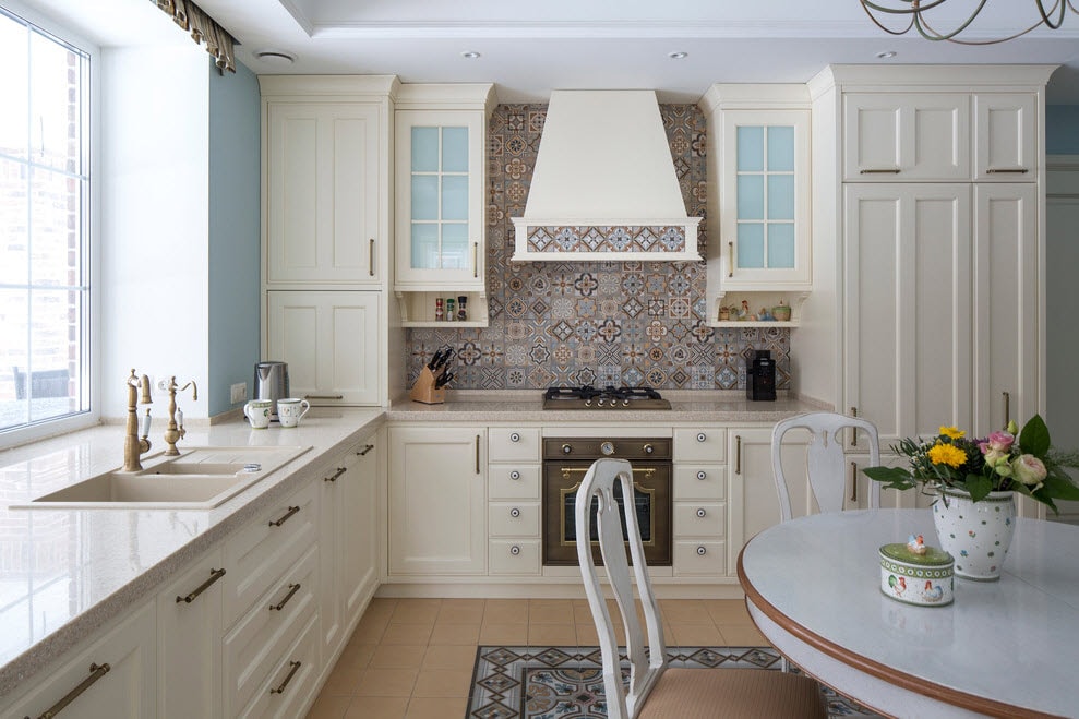 Фартук с орнаментом – выразительный акцент в интерьере кухни