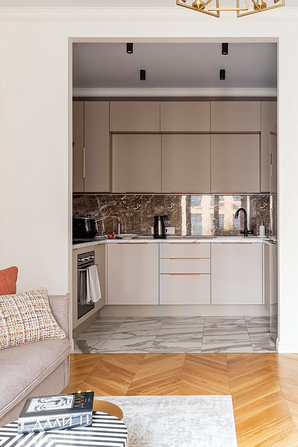 Отличительная черта, по которой можно сразу же считать стиль — встроенная техника. Это актуальный тренд, который идеально отвечает идее оптимизации пространства.