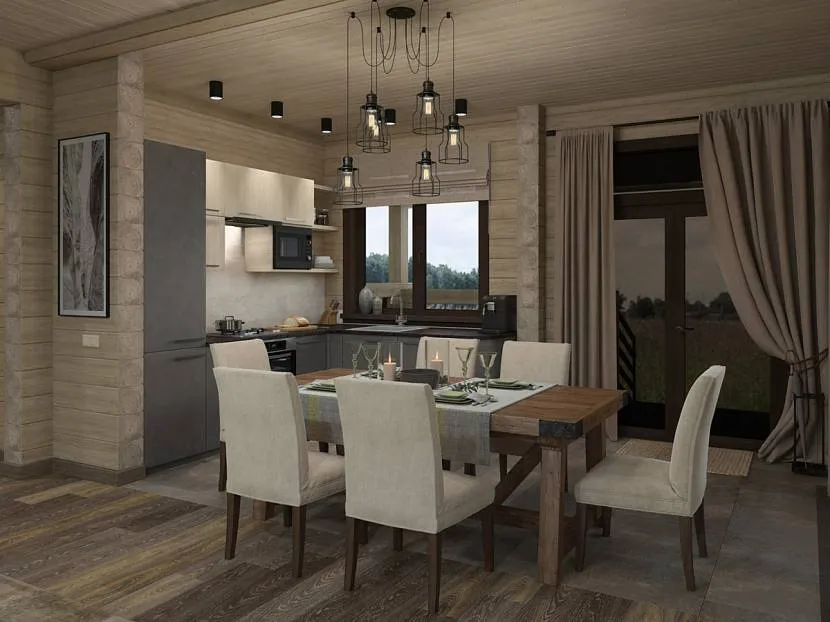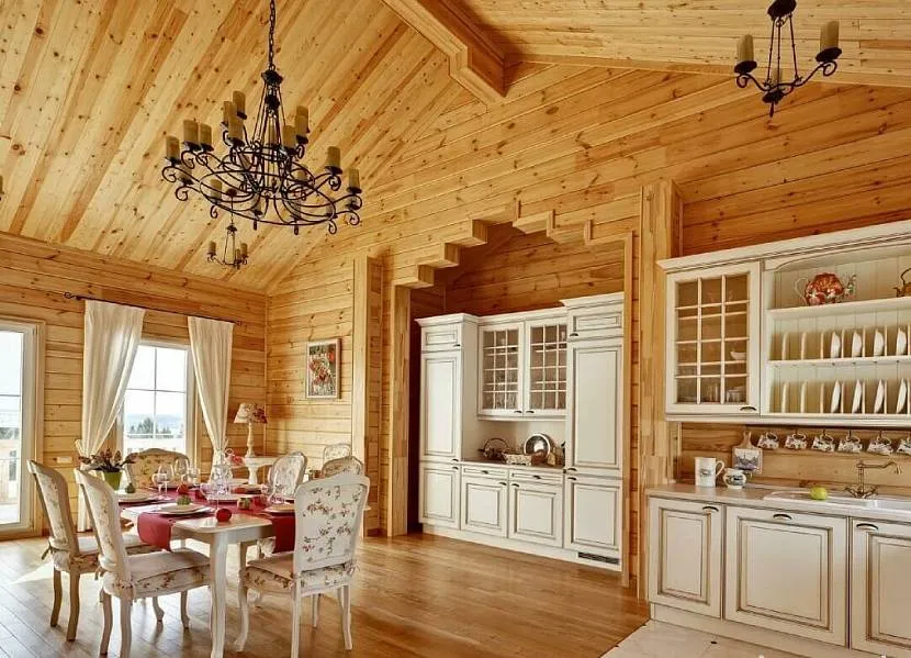 Секреты удачного сочетания мебели и отделки на кухне в деревянном доме